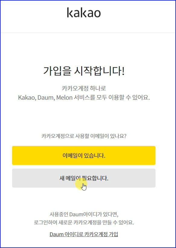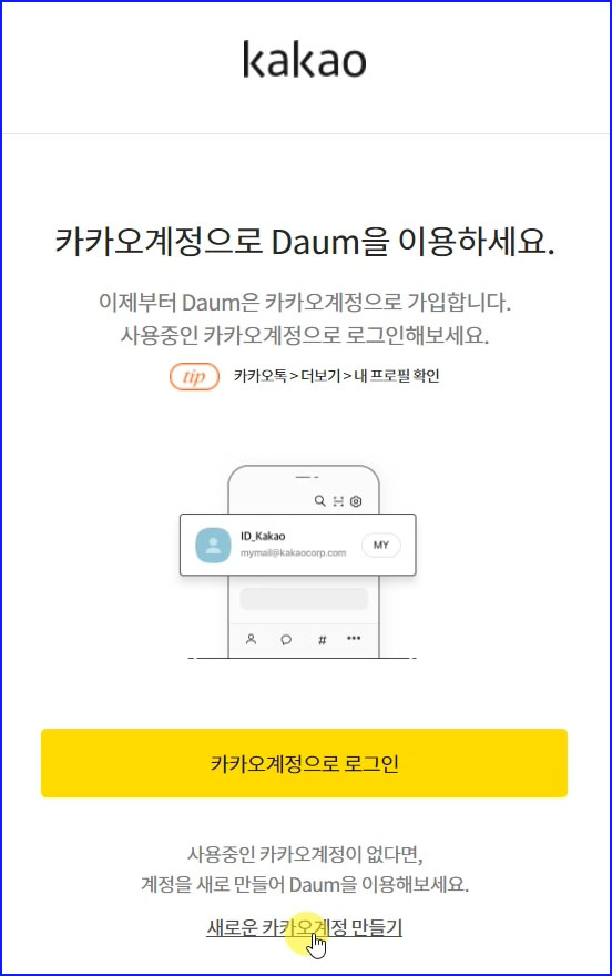 2. '카카오계정으로 Daum을 이용하세요.'에서