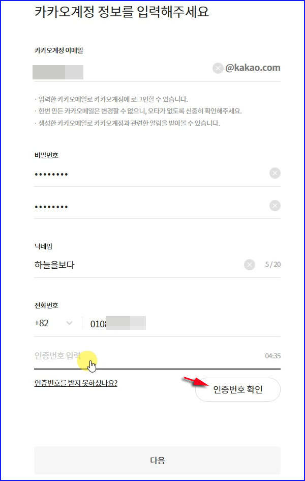 다음 회원가입, 다음 아이디 (다음 이메일 주소) 만들기