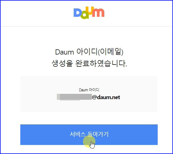 13. 'Daum 아이디(이메일) 생성을 완료하였습니다.' 메시지가 나타나면